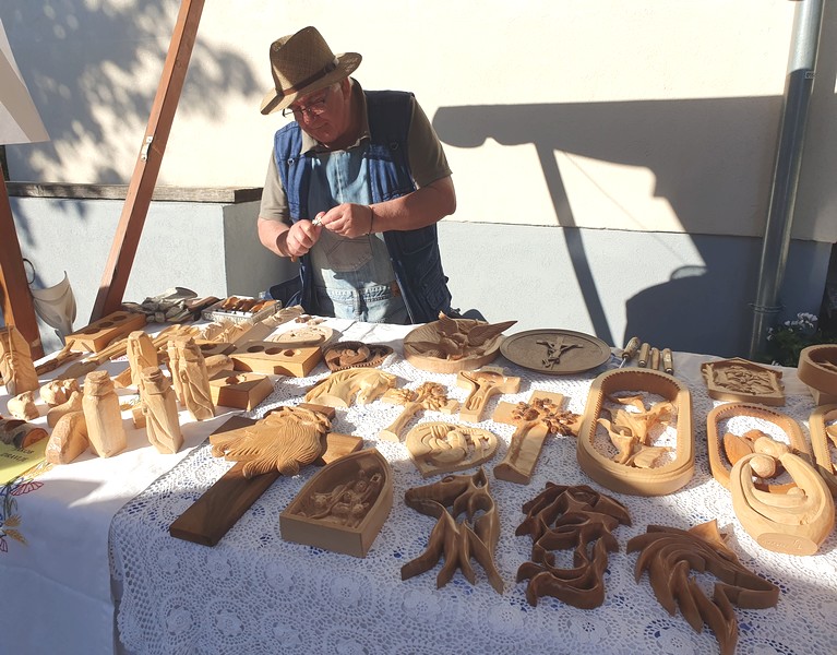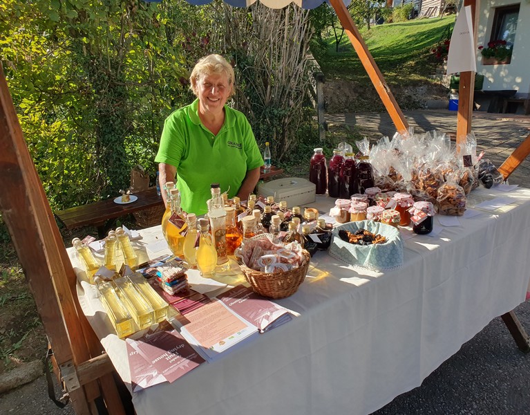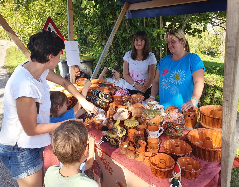 Na začetku vasi so se pri dveh članicah gostje lahko najprej okrepčali s prvim šilcem, nato so na številnih stojnicah z izdelki domače obrti lahko nakupili od medu, domačih testenin, napitkov, keramike, lesenih in lončarskih izdelkov, pletenin ter drugega tekstila do igrač, nakita, vitrajev in seveda marsikaj iz ponudbe našega društva.