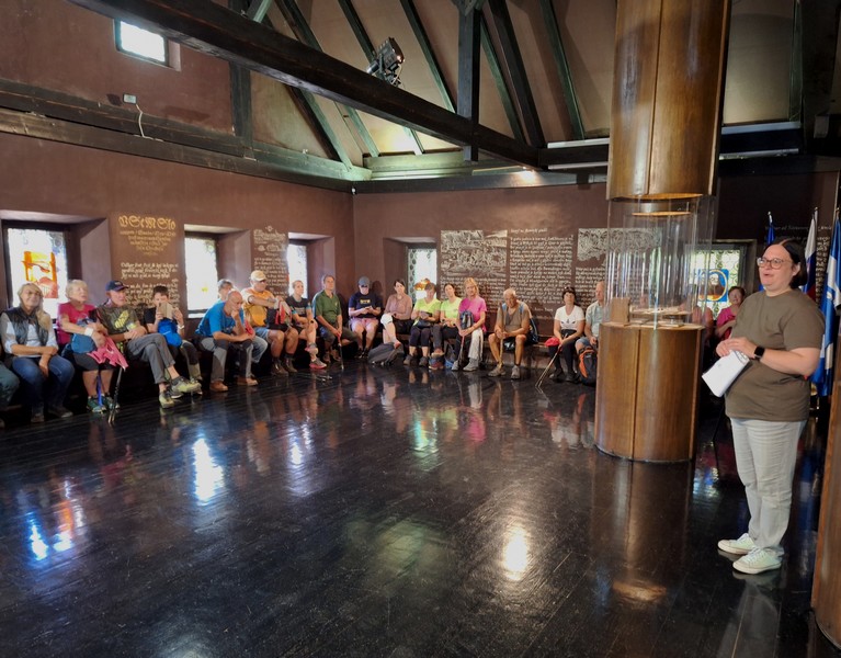 Malo po deveti uri zjutraj nas je 71 pohodnikov po pozdravu predsednika društva Lojzeta Senčarja in po »zajtrku« s krofi, ki jih je poklonila Pekarna Grosuplje oziroma skupina Don Don, vzela pot pod noge proti Rašici. Na Trubarjevi domačiji nas je pričakala Breda Dvořak Drašler, poznavalka Primoža Trubarja. Izvedeli smo, da smo na obisku prav poseben dan, saj je bila prav 21. septembra leta 1986 (tudi v nedeljo) odprta Trubarjeva spominska soba. Osvežila nam je spomin na pomembne dogodke v Trubarjevem življenju in z veseljem odgovarjala na mnoga vprašanja obiskovalcev.